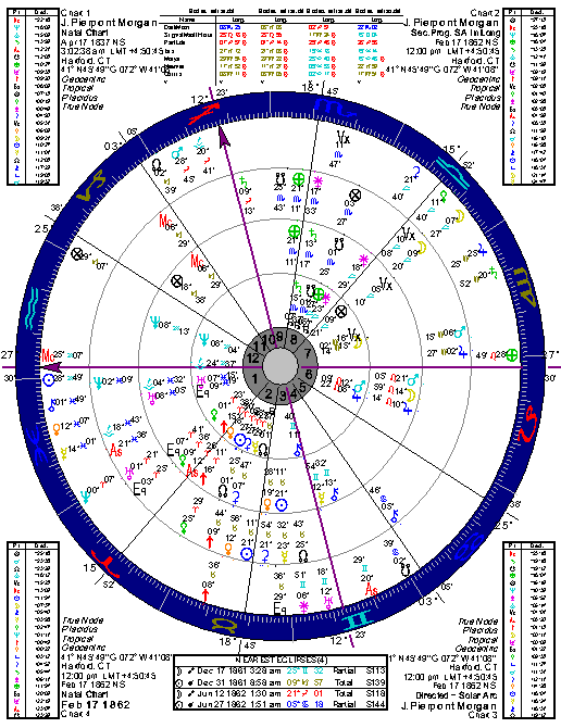 diary); 1:10 PM, LMT. (Source: Evangeline Adams, astrologer to Morgan)